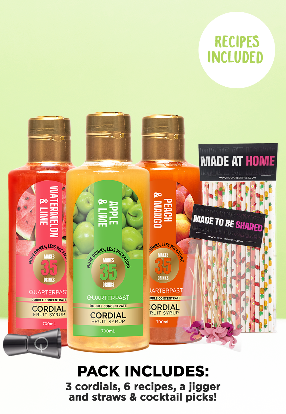 Meet your new holiday go-to, the Real Fruit Mojito Kit! With Apple & Lime, Peach & Mango , and Watermelon & Lime, plus a jigger, cocktail picks, straws, and recipes, it is everything you need to mix, muddle, and make fruity mojitos at home. Just add your liquor, pour over ice, and get ready to sip, laugh, and repeat.